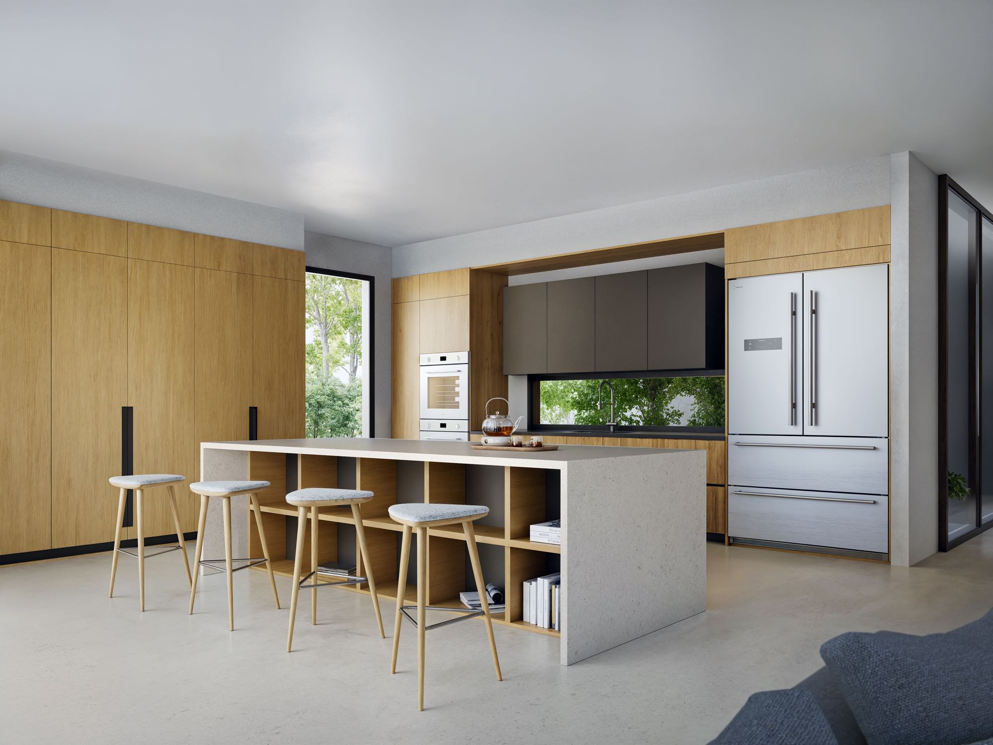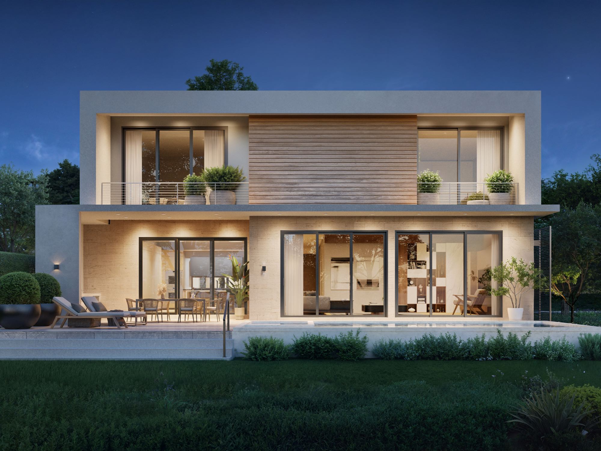 Architecturally refined single-family residence, with completion scheduled for January 2026. Offering 4,300 SF of interior space this thoughtfully designed home features 4 bedrooms, 5 bathrooms plus a powder room, and a 2-car garage. First floor has an additional Felx-room plumbing ready to converting into a full fifth bedroom with en suite bathroom. The residence welcomes you with a refined arrival experience framed by leather-finished travertine walls, and clean modern lines throughout. Designed for seamless indoor-outdoor living, the open layout flows to a summer kitchen, internal garden, pool, and a travertine-finished outdoor entertaining area. The primary suite is a true retreat, featuring a spa-inspired bathroom with teak flooring in the shower and views to a custom-designed private vertical garden wall, curated with plant selections specifically chosen for this space. High-end finishes throughout, with thoughtfully integrated systems and plenty of storage spaces.